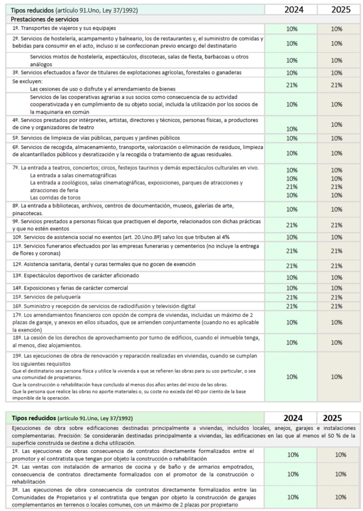 Recordamos los tipos de IVA aplicables a partir de 2025: