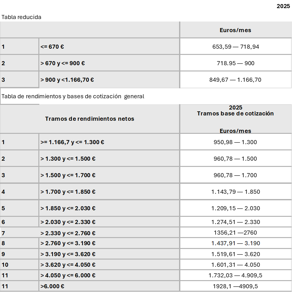 Recuerde que cada año es “recomendable” actualizar sus bases de cotización en base a sus ingresos netos reales, en caso contrario el ajuste lo realizará de oficio la Administración una vez hayan presentado su declaración de RENTA. Le avanzamos los cambios que se han producido en las tablas del 2025: